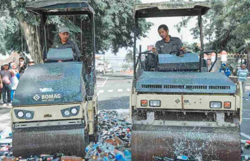 WONOSOBO – Pemerintah Kabupaten Wonosobo resmi memusnahkan 1.038 botol minuman beralkohol ilegal, Jumat (10/10/2025), di Jalan Merdeka Wonosobo. Pemusnahan ini merupakan bagian dari penegakan hukum terhadap pelanggaran Perda Nomor 21 Tahun 2008 tentang Pengendalian dan Pengawasan Minuman Beralkohol, sekaligus langkah menjaga ketertiban masyarakat dan melindungi generasi muda dari pengaruh negatif alkohol.