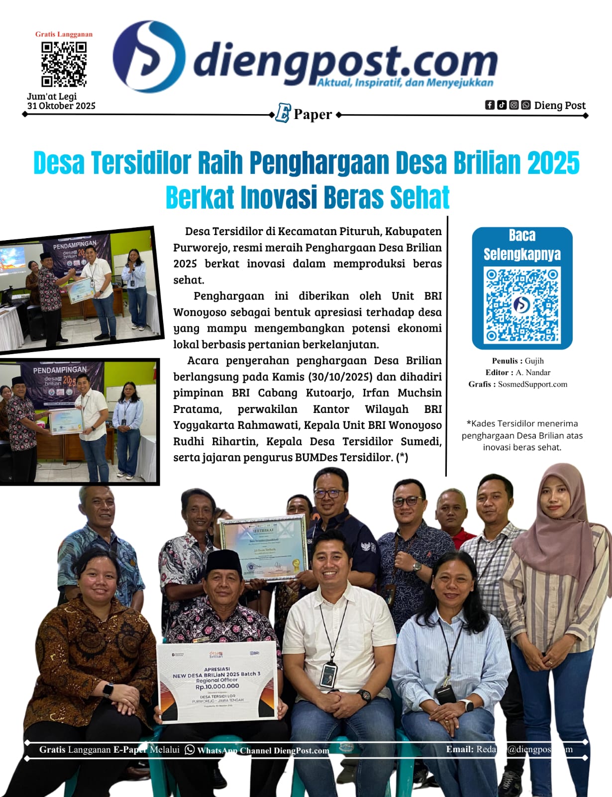 Desa Tersidilor Raih Penghargaan Desa Brilian 2025 Berkat Inovasi Beras Sehat