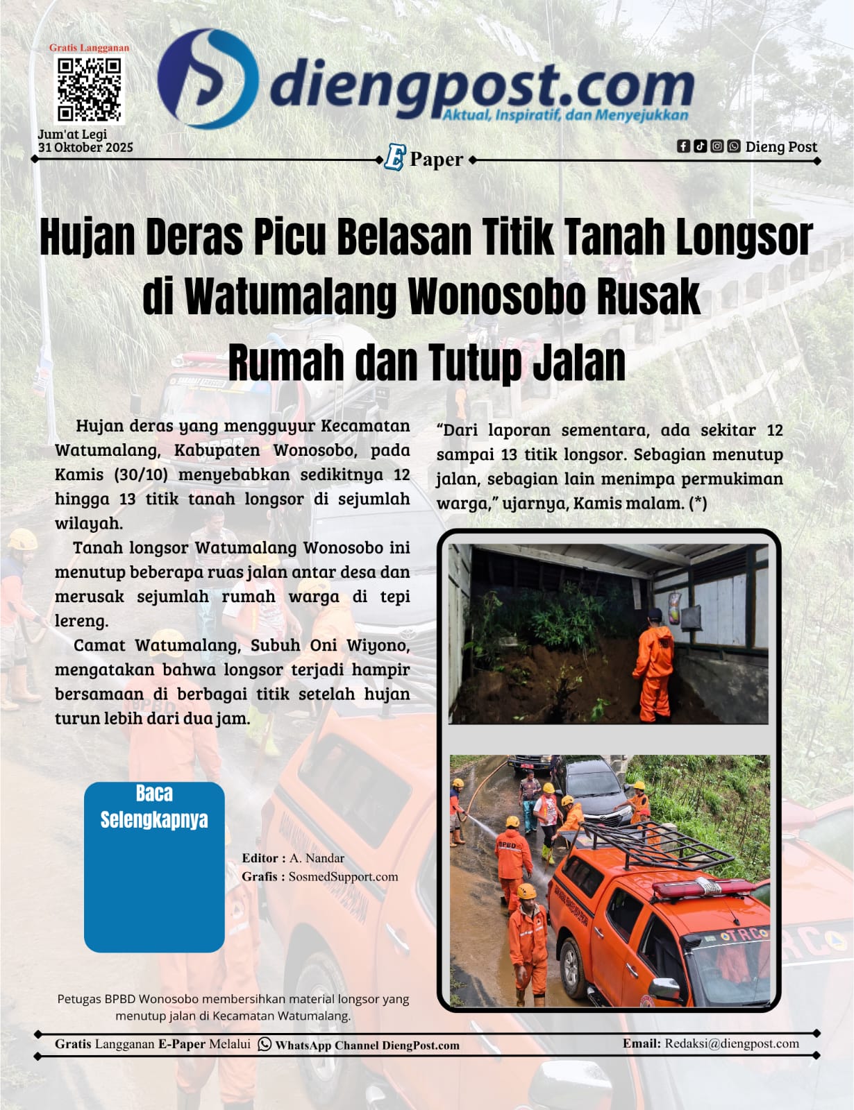 Hujan Deras Picu Belasan Titik Tanah Longsor di Watumalang Wonosobo, Rusak Rumah dan Tutup Jalan